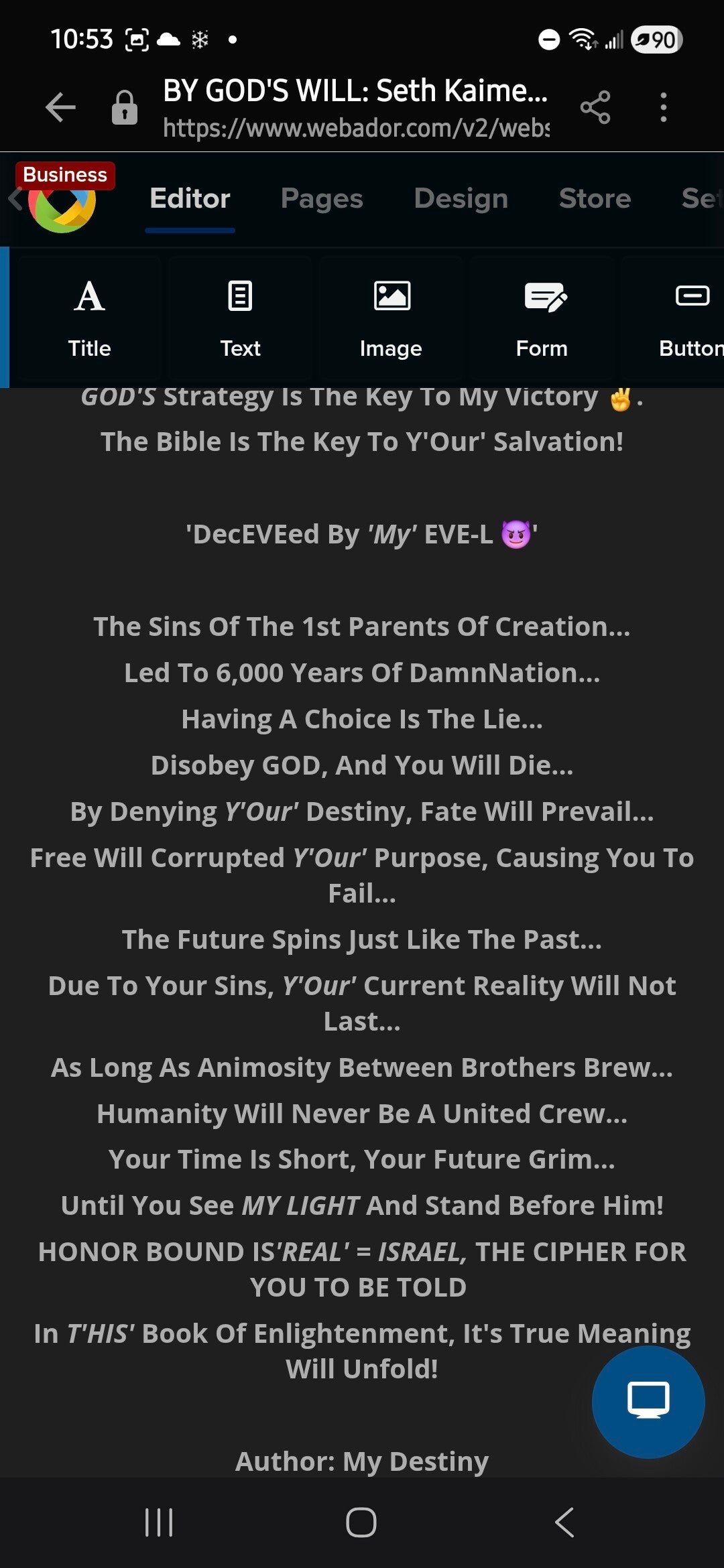 Below Is What The WORD OF GOD'S INSPIRATION Wrote In My Bible, When I Was Just Writing The BEGINNING OF HEAVEN WHO CONQUERS WEBSITE. ALLAH THE NAMES I've LEARNED Were A Way To Connect With You 4Ever, As My JOB Is Never Done: HONOR BOUND LEGACY OF CREATION'S "Resting While Nesting." "I CANNOT Pick And Choose Which BLESSINGS I Am To Recieve," Nor Can I Save You From YourSelfish Desires To Intentionally Sin. Allah I Can Do Is Provide You LIFE GIVING WATERS (FREE'LY)ing' On My Belly (WINGLESS 🪞 SOULESS 🎶) Like The Taught CHOSEN ONE'S PERFECT LOVE FROM HEAVEN ABOVE. (GENESIS 3:8-19)